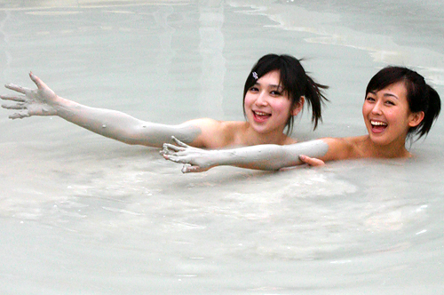 いろんな湯船があって泥湯もお肌にいいし、泥湯を出たら外に露天風呂が何個もあります。