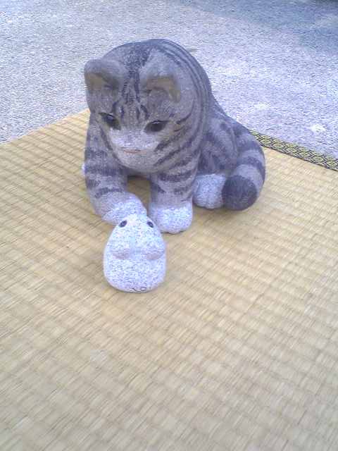 最高気温が東京、名古屋31度、大阪30度、仙台33度と予想され。今年最高の温度になるとこが多いようだ。国会も過熱、日経平均も大幅高。石の猫でも見てひんやりとしよう。