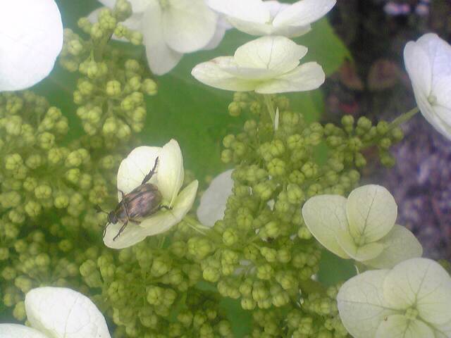 アジサイにコガネムシは珍しいのではありませんか。