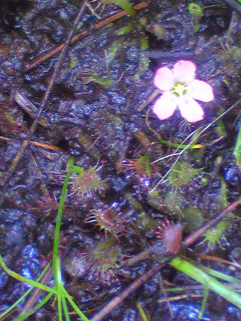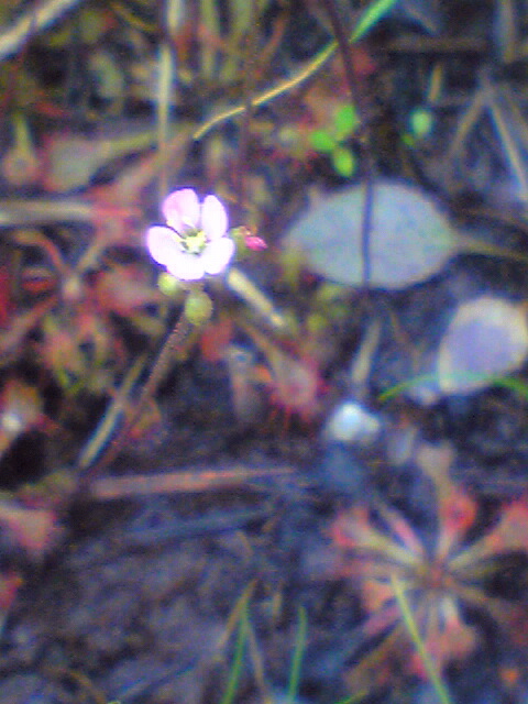 トウカイコモウセンゴケようやく花が咲いているのが見られました。昼前の限られた時間しか咲かないので、滅多に見られません。つぼみはよく見ます。花は小さくて、実際はもうすこしピンクの綺麗な花ですが、どうも白っぽく写っています。小さな蚊や虫を捕まえて、増えるようです。昔は自分の実家にも普通に生えていました。水がそんなに必要でないのでモウセンゴケよりは乾燥した場所に生えます。ここでも、表示はモウセンゴケと書かれているとこもあり、多くの人が間違って覚えそうですね。