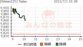 よく見ると二度にわたる9900円アタック後に下げているが、出遅れ株などによるものか・・・。