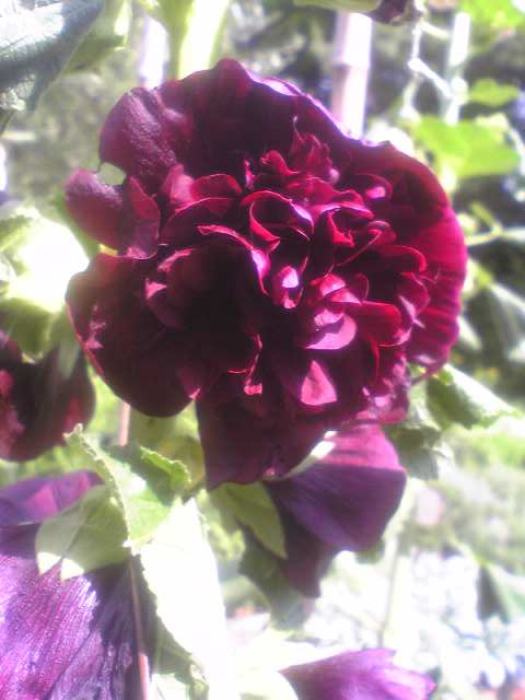 下の写真は咲き登ってゆきますね。八重の立ち葵でしょうか。