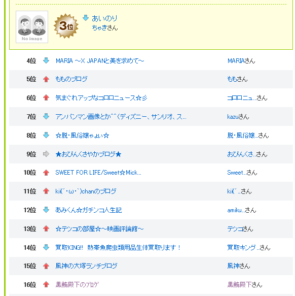 まぁ~~  16位 おめでとう ございま~す   (^o^)ノシ