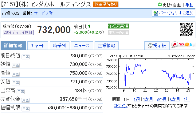 前回紹介したコシダカHD 2157 の株価上昇が止まりません