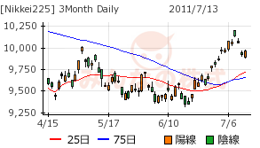日経平均テクニカル:転換線などが上値抑制、1万円の壁がより厚くなった感