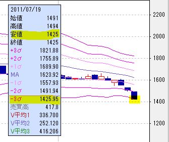 書いた通り、まっすぐボリバン下限に抵触しに行った。