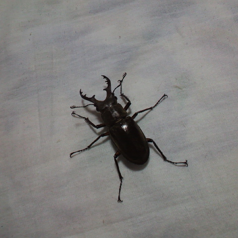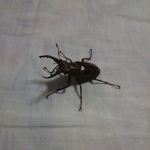 外に出て暗がりを探してみるとミヤマクワガタ(♂)がいました。