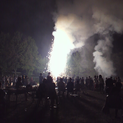 納涼祭の締めは手筒花火の披露がありました。生で見るのは私も初めてで、火薬の量を抑えているという話でしたがすごい迫力でした。