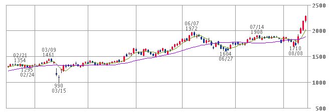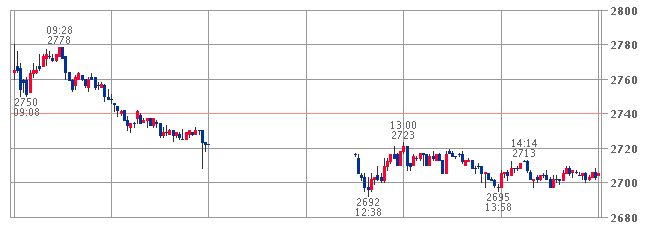 14:30になっても動きがなく2220円を下回る場面も出始めた。