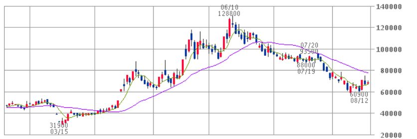 しかしこれを横ばいor下落の判断が付かず、この先予測不能。