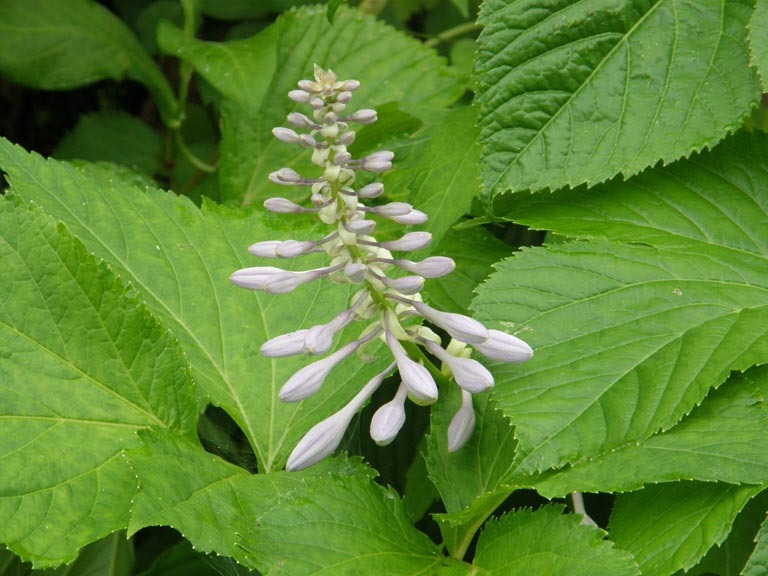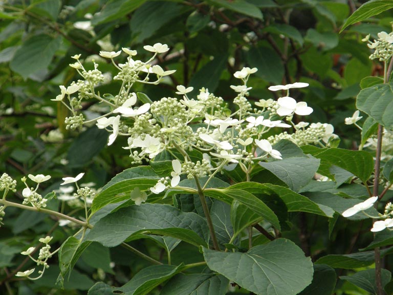 左がオオバギボウシ(ゆり科)、右がノりウツギ(ゆきのした科)