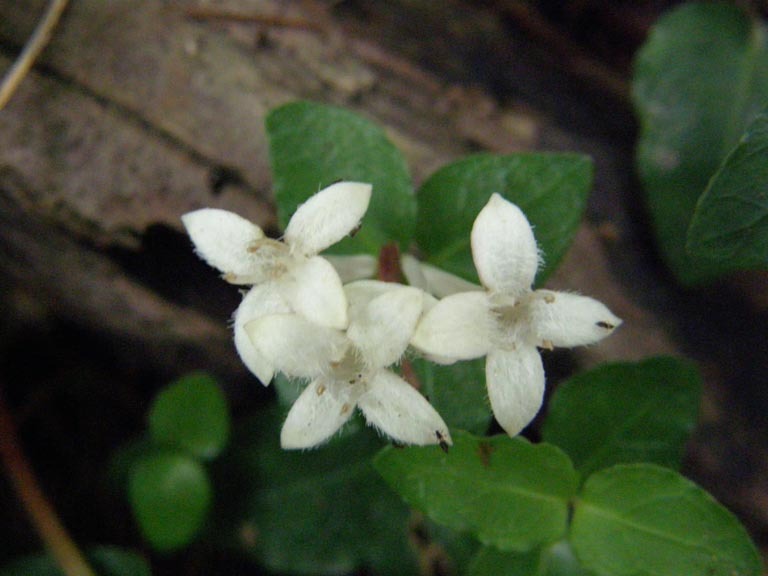 左がオオバミゾホウズキ(ごまのはぐさ科)、右がシロバナイナモリソウ(あかね科)