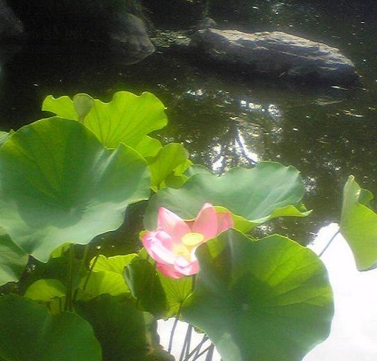 夏の終わりにもかかわらず、まだ咲いているハス。種も取れる実もなっています。よほど涼しいとこなのでしょう。