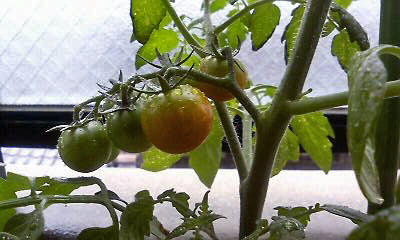 そうです、コロコロ小さなトマトさんも、ムクムク成長しっ♪ついに色づき始めますたっ♪