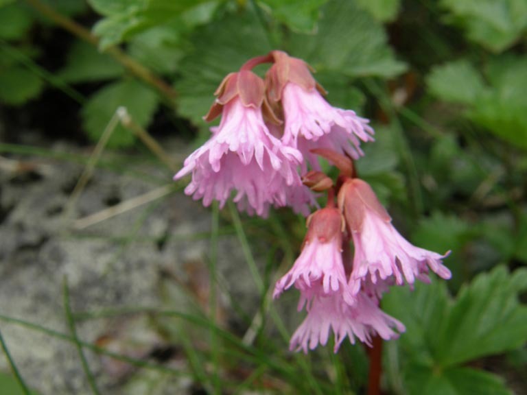 左はイワカガミ(いわうめ科)、右はアオノツガザクラ(つつじ科)