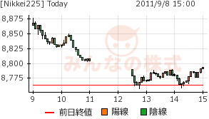 日足は下髭付き陰線。安値を2回探っているので明日は上げても不思議ではないが、やはりオバマ発言とダウが良くないと続落もありうる。