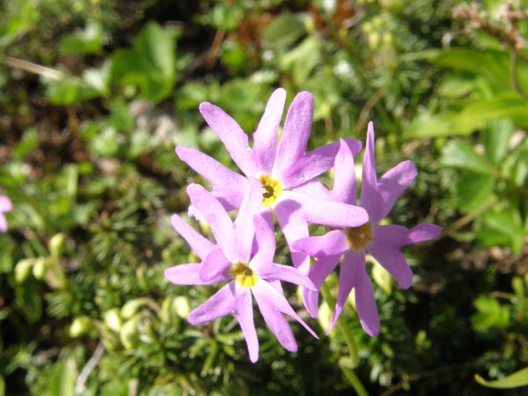 左からハクサンコザクラ(さくらそう科)、ハクサンイチゲ(きんぽうげ科)、ハクサントリカブト(きんぽうげ科)
