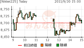もし、以上の憶測が正しければ、来週の株価は8800~8400と見ることが出来る。ここでの8800円は、25日移動線が来週は上昇するからであり、この抵抗線はまだ継続するという意味。また、8400円は直近安値近辺という意味であり、もしこの直近安値を更新するようなことがあれば、昨日の大陽線はダマシと見ても良いと考えるが、どうだろうか・・・。8400円を下回ることは考えたくないが、あるとすれば、10月半ばまでで、その後は上昇トレンド形成に向かうものと期待したい。