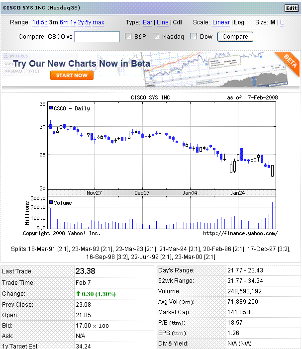 小売売上高は低迷、新規失業保険申請件数は高水準と出てきた指標は悪かったのですが、値ごろ感からの買いでリバウンドしたようです。前日引け後に決算を発表したCiscoも寄り底プラス引けでした。