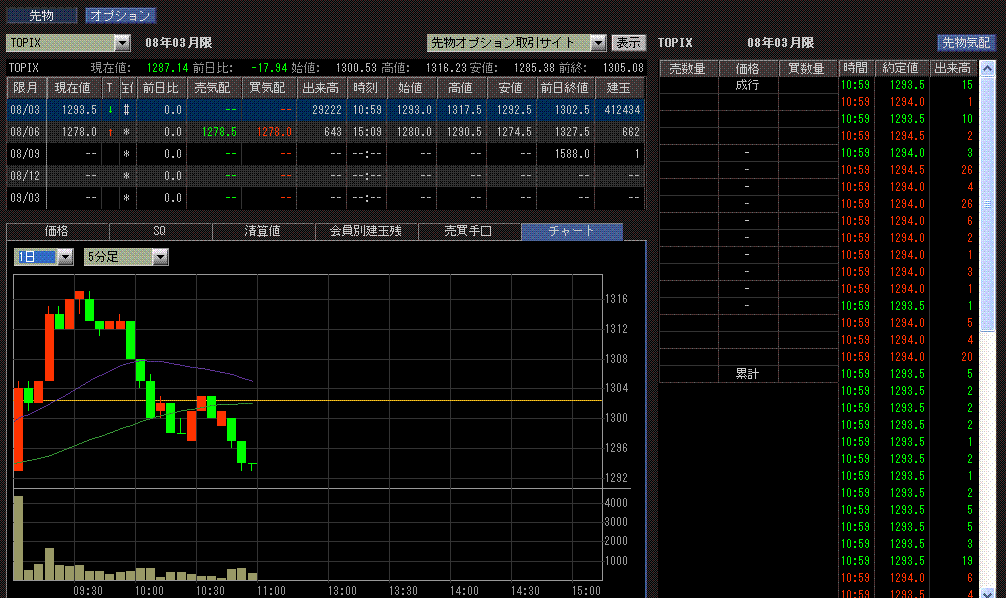 >TOPIX先物は東証で、日経平均先物は大証で取引されます。
