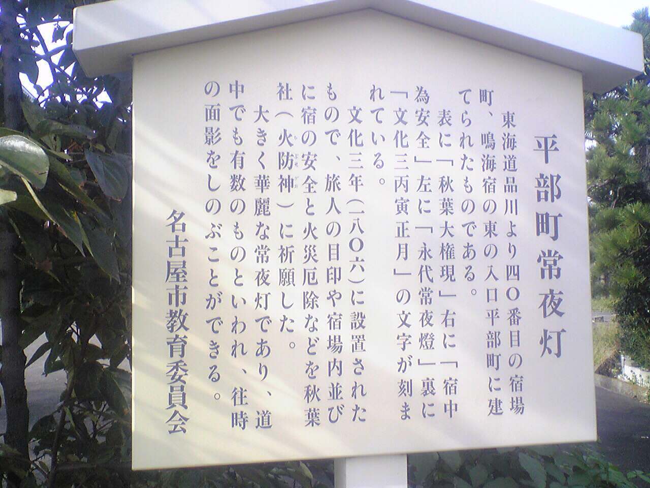 鳴海の宿の入り口にある常夜灯、松があったんですが枯れてしまいました。変わりにとなりの土地にある柿がなっています。東海道の風情が残っていて、有松から鳴海にかけて歩かれる人が多いです。道も当時のままの広さで狭いです。