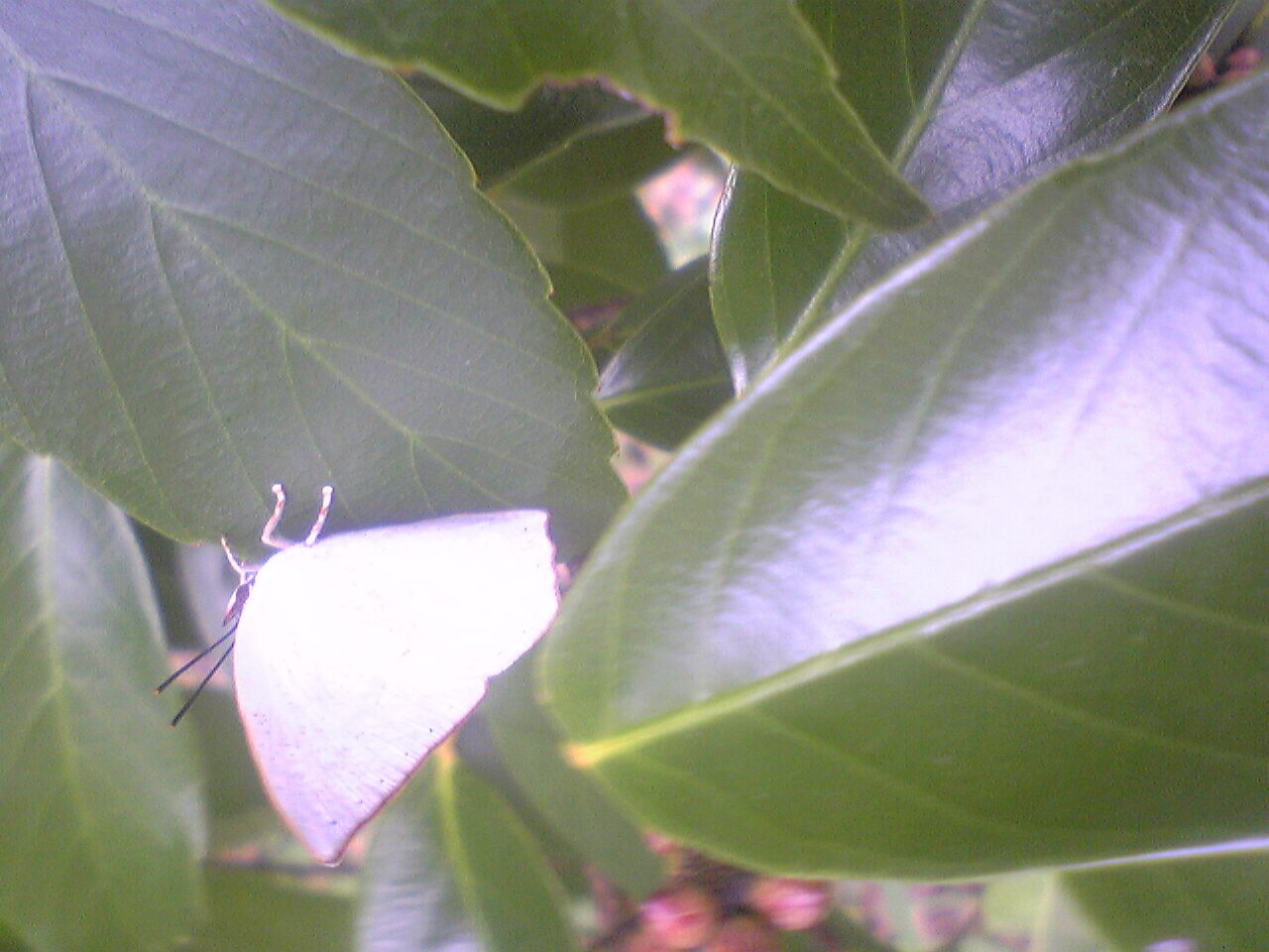 冬眠に入るとき、蝶はこうやって日のあたりやすい、南か東の木の陰にいます。体温が25度ぐらいにならないと飛べないのでしょう。人間のように発熱できないので、ソーラーパワーが必要です。ウラギンシジミも雨の日や、朝早い時期はこうやって止まっています。木はアラカシのようです。