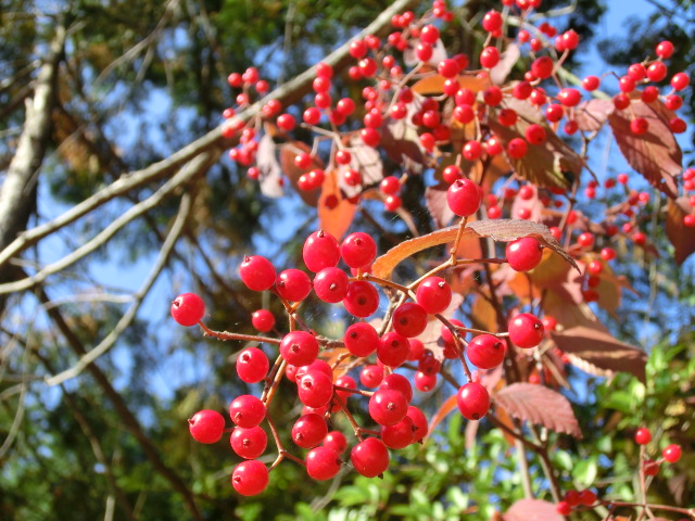 今年は木の実の大豊作の年でして、ガマズミは鈴なりです