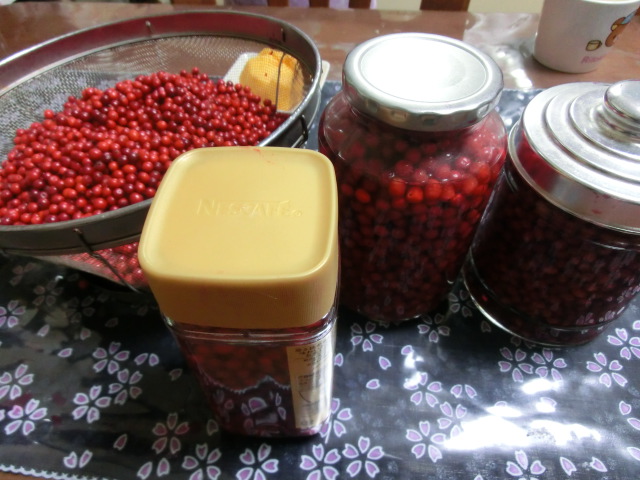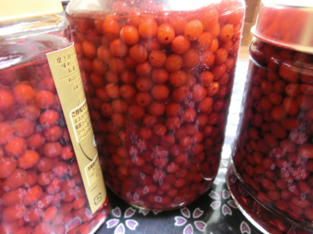 大粒と小粒を分けて焼酎に漬けましたが、娘から、これは瓶詰めと言うんじゃない?・・・・とのご指摘^^;