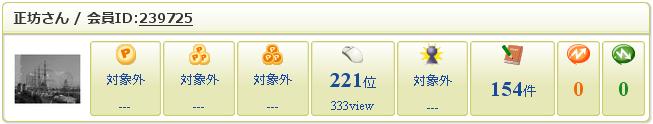 アクセスが221位と333view。もうちょっとで2のゾロ目と3のゾロ目をゲットできた