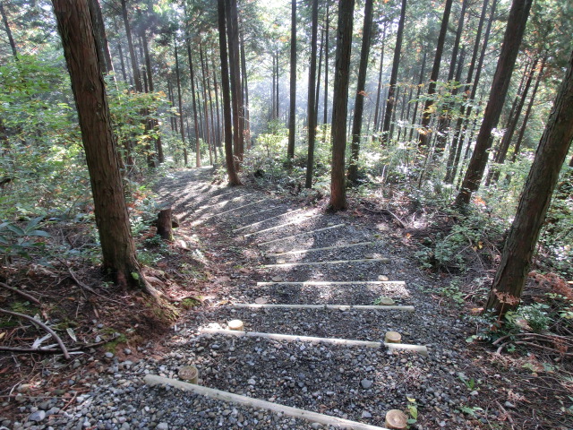ヒノキの山で、頂上までヒノキ材の段段坂です・・・長いこと長いこと^^;