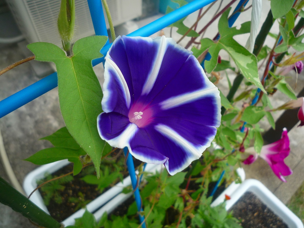 * 写真は、我が家の庭のプランターで育てていた夏のアサガオ。