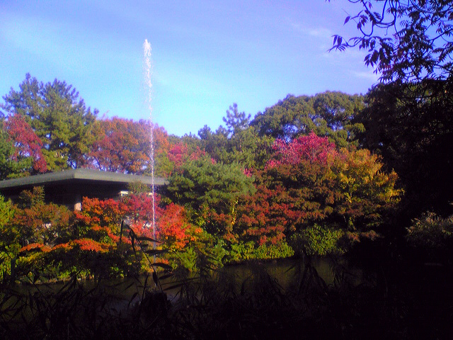 鶴舞公園の秋の池だったか?変な名前の池がありました。春はツツジ、秋は紅葉で綺麗です。