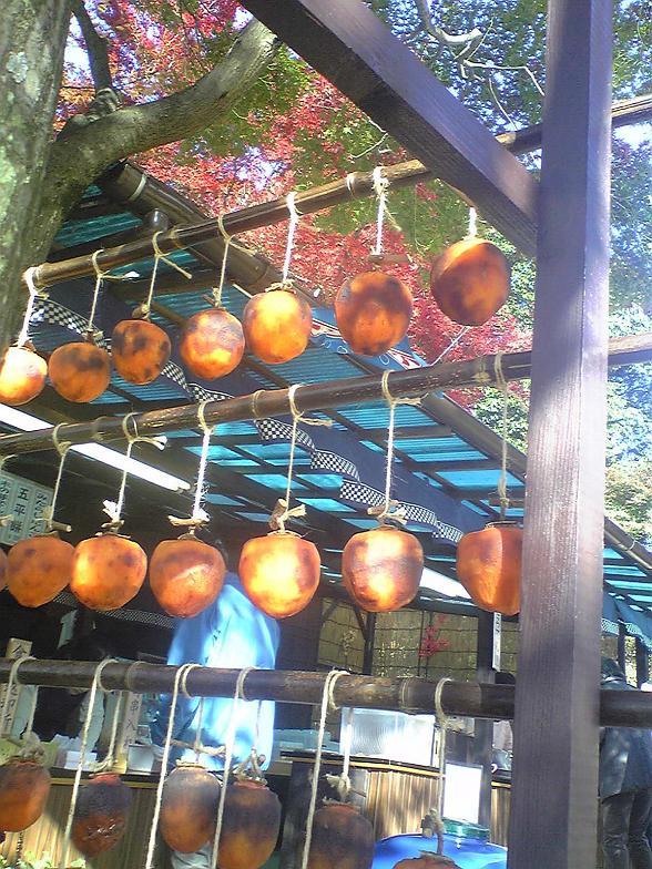 徳川家ゆかりのお寺、定光寺の紅葉は有名ですが、ここで面白い光景が。柿がつるしてあり昔ながらの茶店の風景。寒いのでお汁粉、NHKで放映された後で人が多かった。