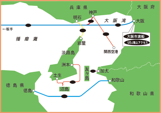 淡路島へのフェリーは、昨年11月15日のたこフェリー(明石淡路フェリー)