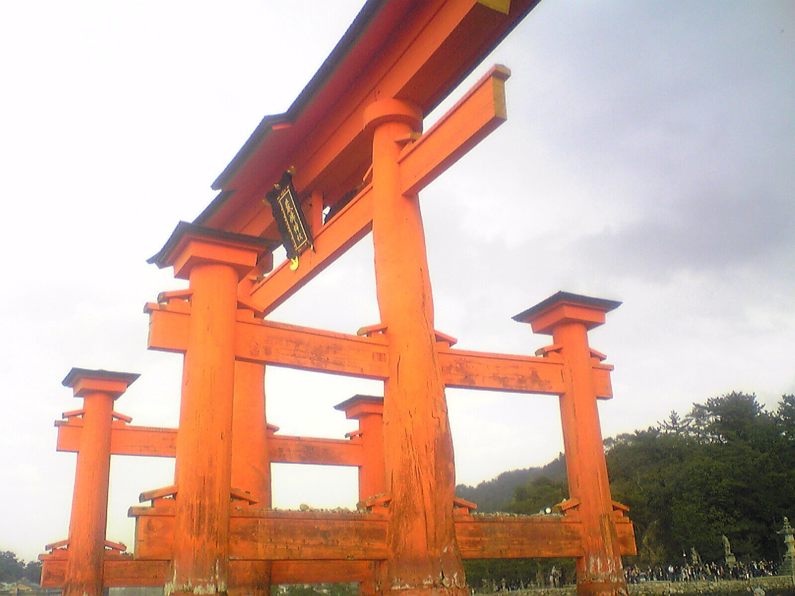 厳島神社の引き潮の時に当たり、海側から撮影できました。裏の表札と表の表札が違うのが印象的でした。