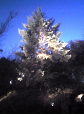 モミノキが白いのは雪?ライトアップ??