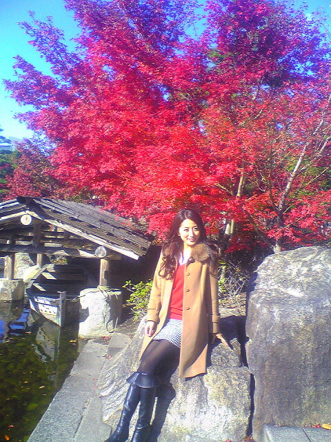 いい写真ですね、紅葉と美女。良い構図です。^^