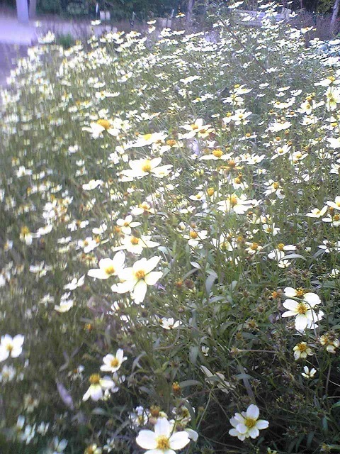 白いコスモス、遠目にはマーガレットと見まごうかもですね。