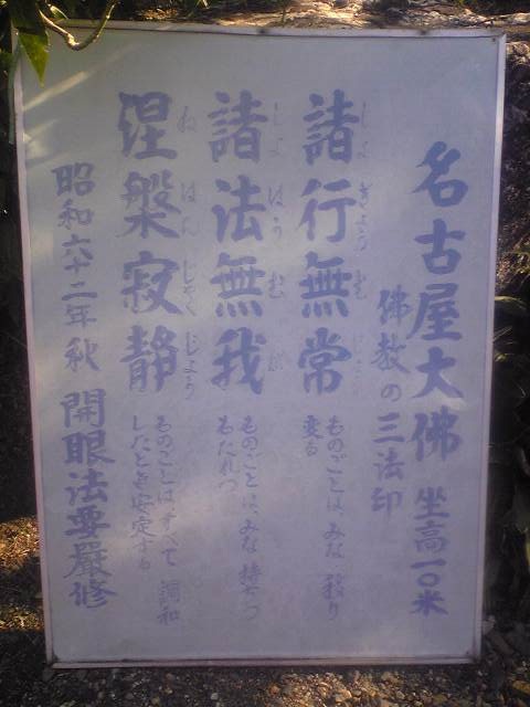 名古屋大仏なるものがあるということで、見に行くとカエルのような色のけったいな大仏があった。恐るべし変人がいる。10mのケロッグの宣伝みたい。でもご利益はあった。