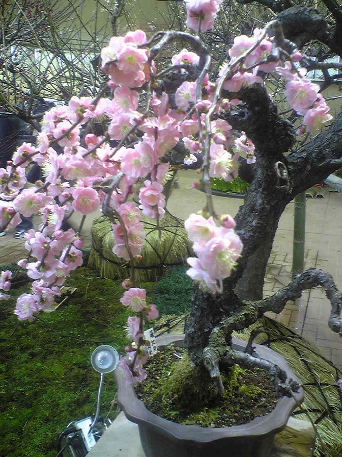 上に向かって枝が伸びる梅と枝垂れ梅。