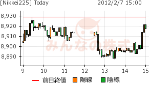 後場に8900円を下回るも戻して、日足は小陽線となった。