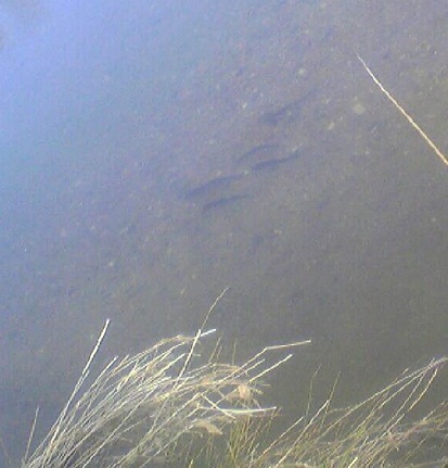 群れてるボラが見える。ほとんど逃げてしまった。