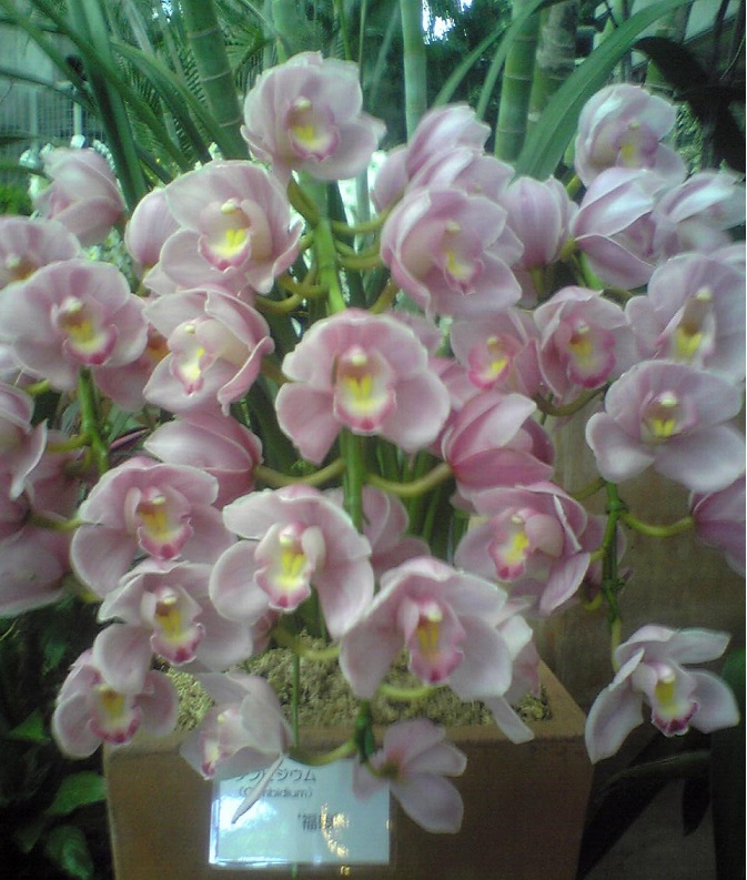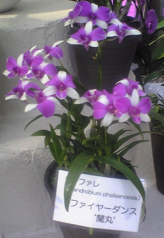 シンビジュウム福娘、デンドロビューム清少納言、デンファレ・ファイヤーダンス蘭丸など面白い名前。福娘はミスコンテストもあるようですね。