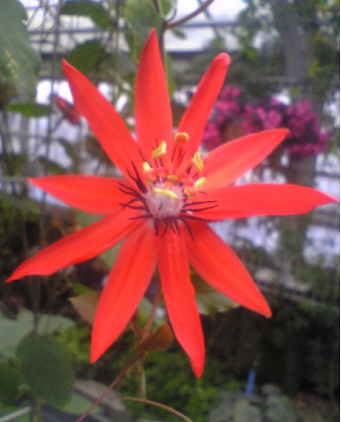 ベニバナトケイソウ、今、東山植物園一押しがベニバナトケイソウ鮮やかな色のトケイソウ。