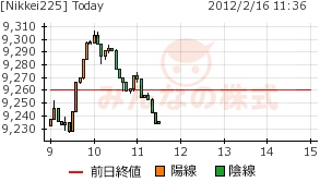 昨夜のダウ下げと、ユーロ安で、NKは小幅安から寄りつき、戻して9300円に乗せたが、反落して午前を終えた。