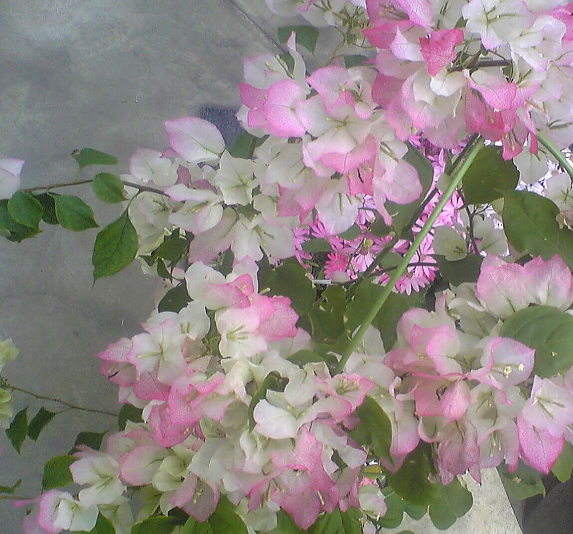 ブーゲンビリアにもこんな色のものが。桃の花みたい。