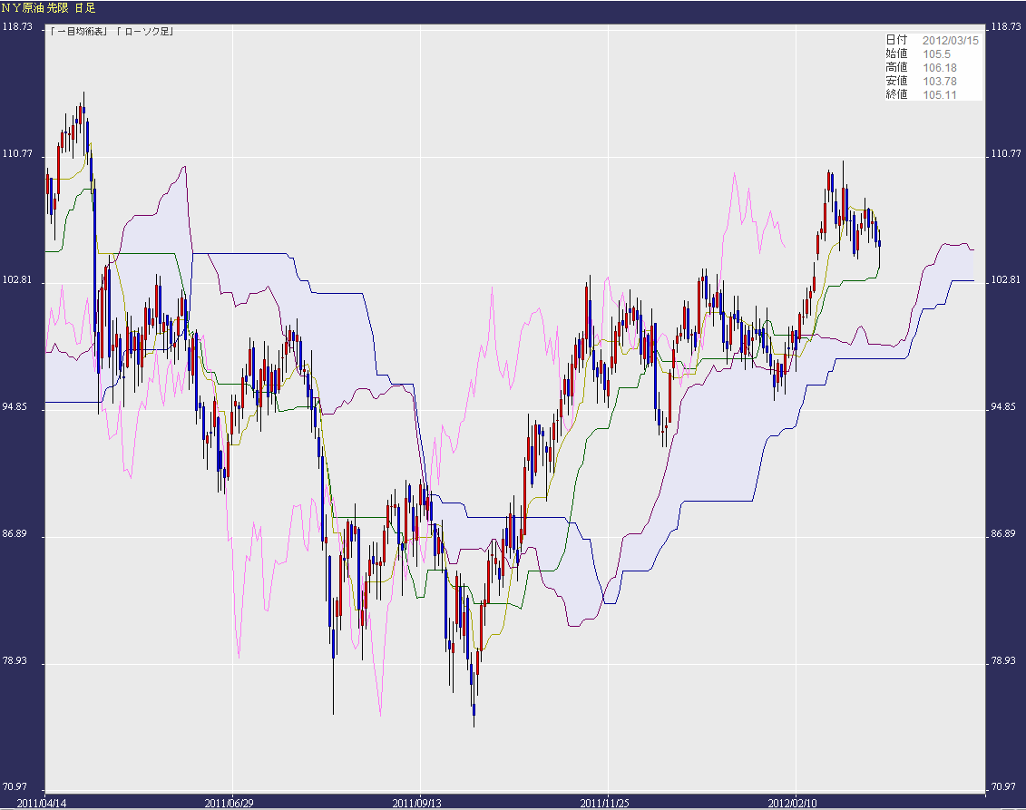 NY原油日足(一目均衡表)である。