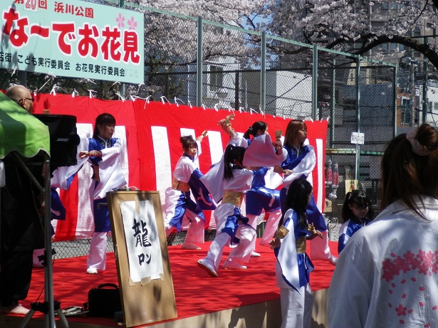 途中の公園でお祭りをやってました。桜も満開です。