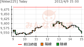 4/9 週明けでも続落。終値9550円に。