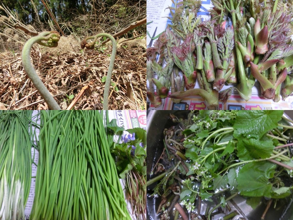 午前中は、ワサビ、アサツキ、ノビルを採りました